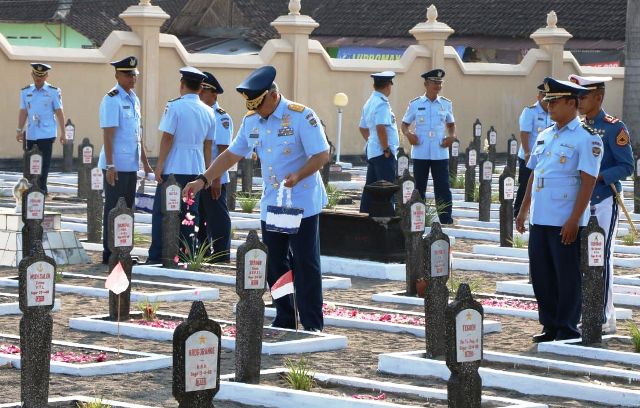 Wakil Gubernur AAU Marsma TNI Fachri Adamy bertindak sebagai Pimpinan rombongan Staf AAU ziarah peringatan HUT ke-53 AAU di Taman Makam Pahlawan Kusumanegara, Yogyakarta, Selasa (31/7),