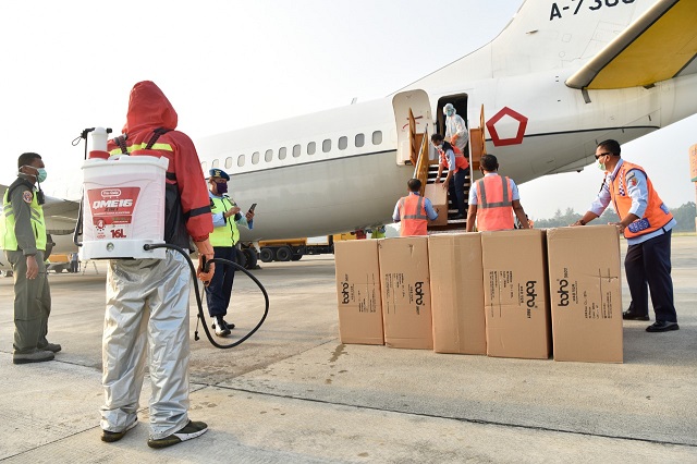 Pesawat Yang Mengangkut Alat Kesehatan Dari Jakarta Tiba Di Lanud Adisutjipto Yogyakarta
